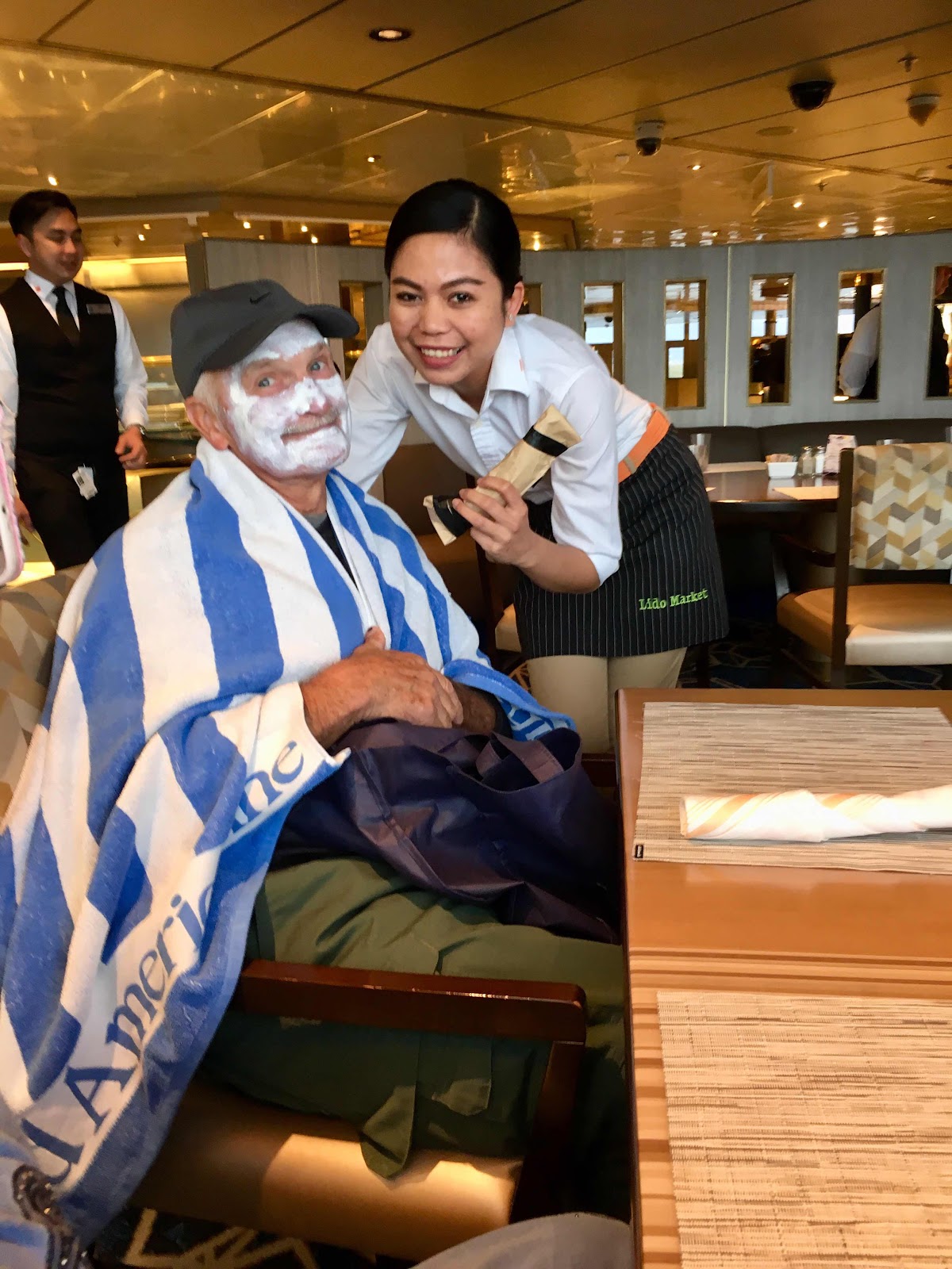 We got off the ship as soon as possible and walked the waterfront listening to different music venues and checking out lots of cute little outside eateries. The harbor are seems to be in a constant state of revitalization with lots of study montage complete with power access. Sailboats were floating by by the hundreds! The whole harbor was full of boating activity. We spent 3-4 hours walking around the waterfront and found a rather large grocery store where we could purchase toothpaste and some other necessities. By the time we got back to the ship our feet were tired and we were ready for dinner. The movie onboard was the true story of Maude, a handicapped woman who became a noted and famous painter from Nova Scotia. We noticed a beautiful sign dedicated to her when we went ashore. We had seen the film before and remembered it to be heart wrenching. That evening the entertainment was called Postmodern Jukebox. They take new songs and transform them into a different version with a flare for a bygone sound that sometimes is interesting but too often for us does nothing for the ears!!